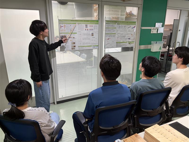 当日は、教員や他学年の学生から多くの質問や意見が寄せられ、発表者にとっては自身の研究を客観的に見直す貴重な機会となりました。また、質疑応答を通じて、研究内容への理解を深めるとともに、説明力やコミュニケーション能力を高める場ともなりました。