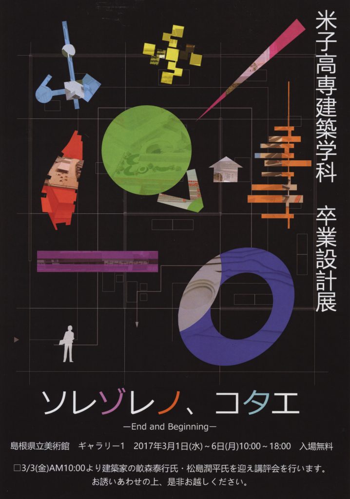 2017年3月1日から6日にかけて、宍道湖畔の島根県立美術館において 「米子高専建築学科・卒業設計展」を開催します。 卒業設計作品の図面・模型だけでなく、本科4年生の設計課題優秀作品、 デザ……
