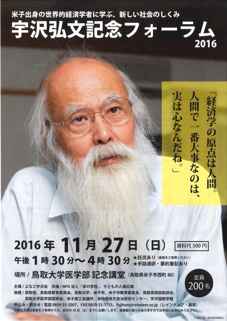 米子市出身で世界的経済学者の字沢弘文を記念したフォーラムが開かれます。 基調講演2では、東京大学の建築の教授、岡部明子さんがお話されます。 学生たちにもよい機会になると思います。 ……