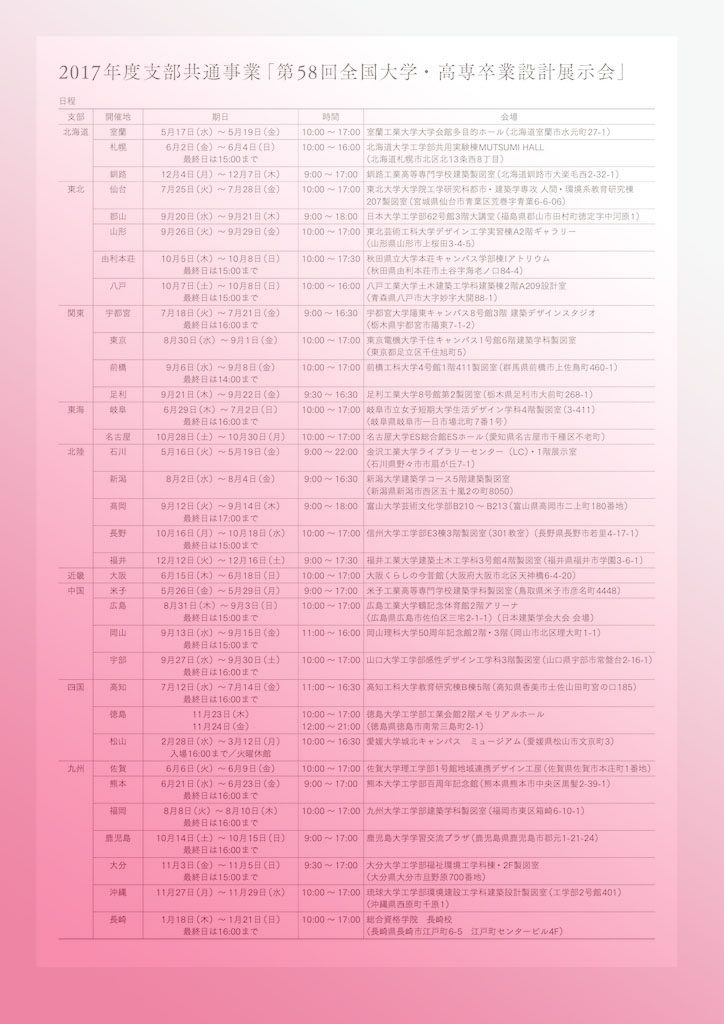 日本建築学会全国大学・高専卒業設計展示会を米子高専建築学科1F製図室において、 5月26日(金)から29日(月)9:00-17:00まで開催しています。27日(土)と28日(日)も開催してお……
