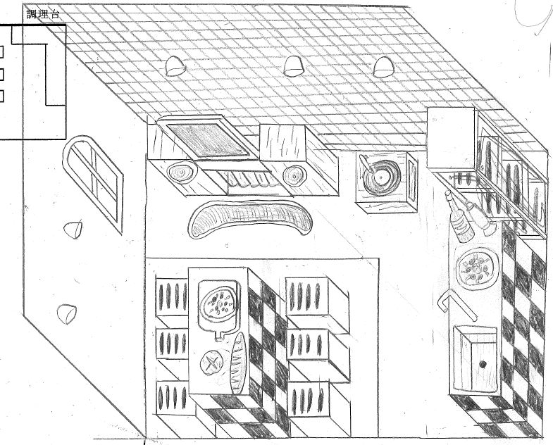 1年生のデザイン基礎の授業で、ミリタリ図法でダイニングキッチンを描く課題を行いました。 良く描けている例を紹介します。 他の作図例は こちら……