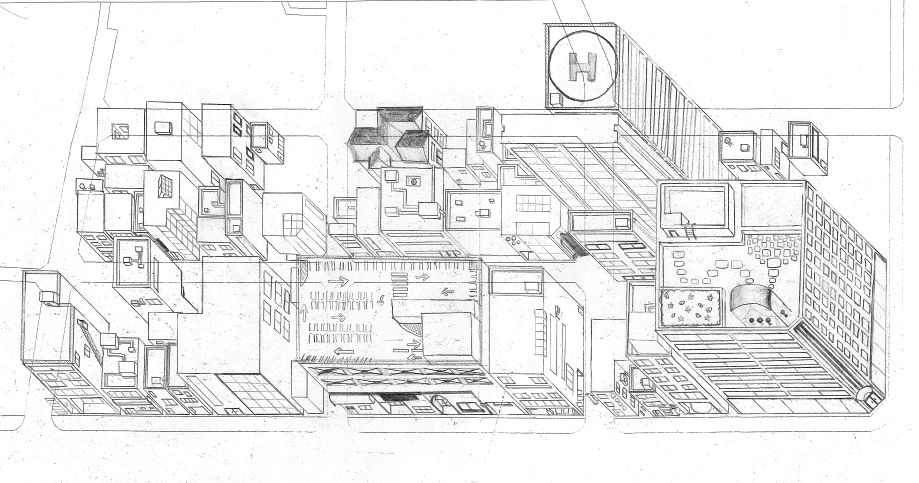 1年生のデザイン基礎の授業で米子の駅前街区をミリタリ図法で描く演習を行いました。 良く描けている例を紹介します。 他の作品は こちら……
