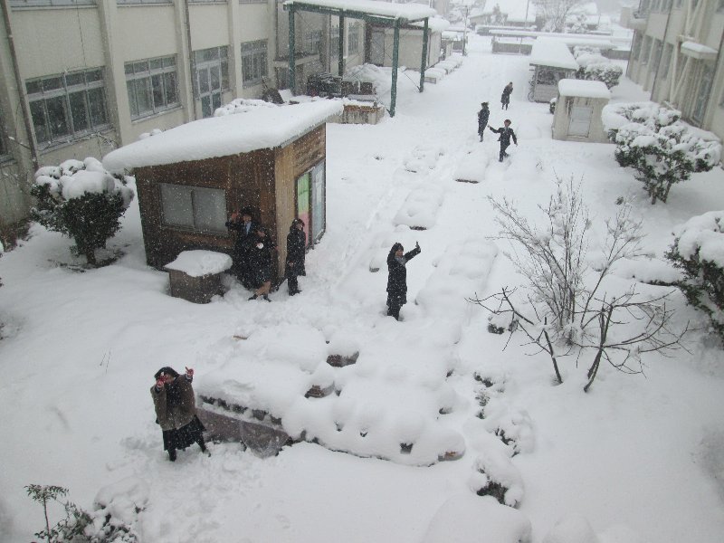 久しぶりの大雪、3Aの学生が雪合戦に興じていました。 ブリューゲルの”雪中の狩人”や”鳥の罠のある冬の風景”に雰囲気の似ている写真になりました。……